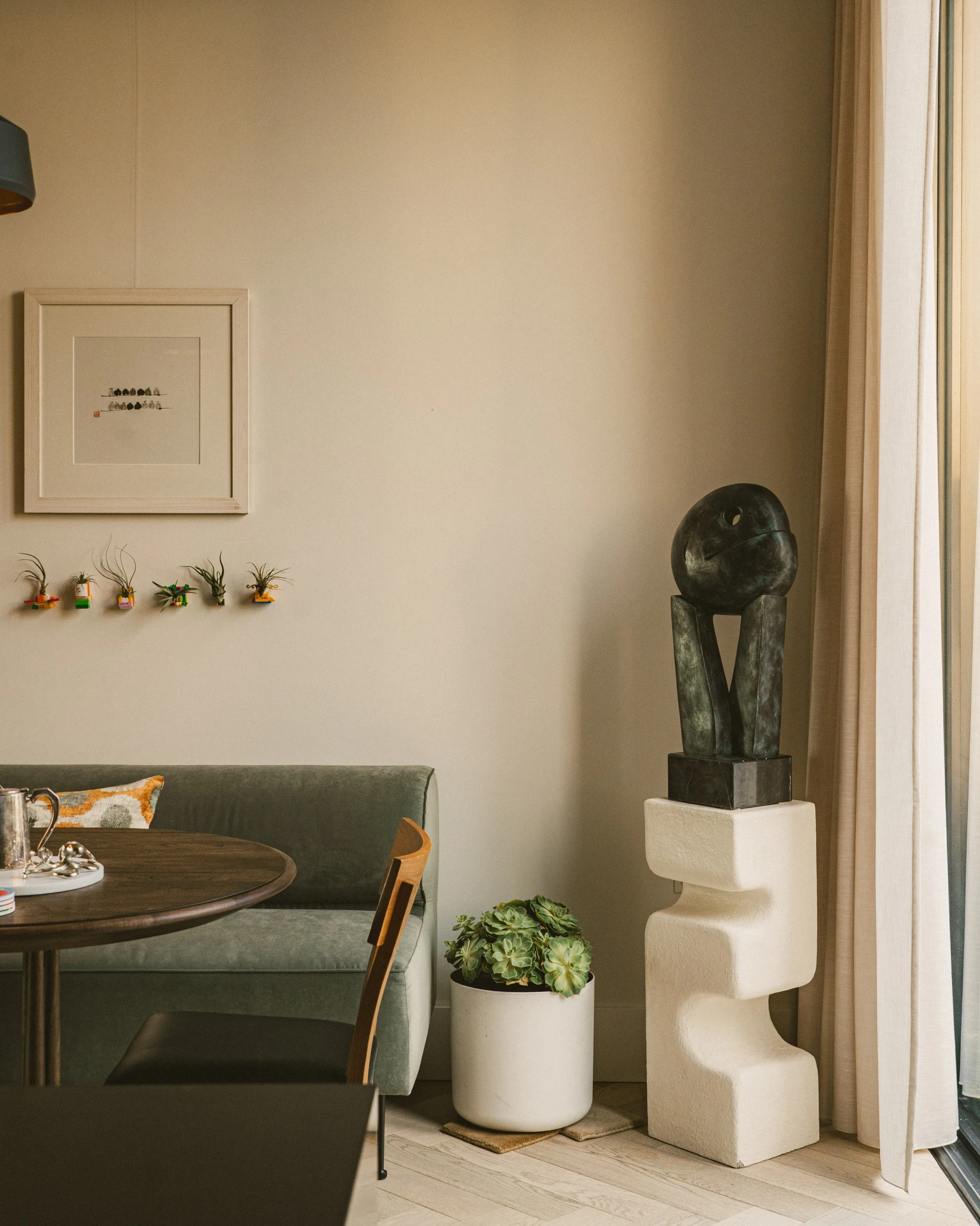Think of it as a living, breathing space—where walls wrap around art, books, and music like ivy, creating an atmosphere of creativity and connection. Every detail, from sculptural lighting to textured materials, is thoughtfully chosen to reflect the rhythm of life here. From the open, welcoming living area to the calm, intimate corners, this home is a seamless blend of history, artistry, and modern comfort.
